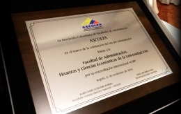 La profesora Amalia Novoa se encuentra en estancia de doctorado en Nueva York. Por eso, Rodrigo Zárate, decano de la Facultad de Administración, Finanzas y Ciencias Económicas, recibió el premio en su nombre.