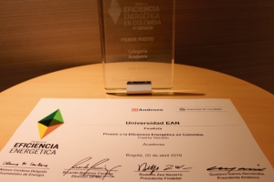 Rodríguez, en nombre de la Universidad EAN, recibió esta distinción patrocinada por el Ministerio de Minas y Energía, la Asociación Nacional de Empresas de Servicios Públicos y Comunicaciones (Andesco), la Unidad de Planeación Minero Energética (UPME) y la Financiera de Desarrollo Territorial (Findeter). Los criterios de evaluación para otorgar dicho reconocimiento, en el cual competimos con la Escuela Colombiana de Ingeniería Julio Garavito y la Universidad Central, fueron: compromiso organizacional, desarrollo del proyecto, impactos medibles y verificables, innovación con impactos y liderazgo.
