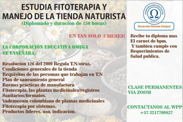 Diplomado en Fitoterapia y manejo de la tienda naturista. 150 horas mas entrega carnet de BPM por 10 horas. Dos documentos exigidos por las autoridades de salud publica en Colombia