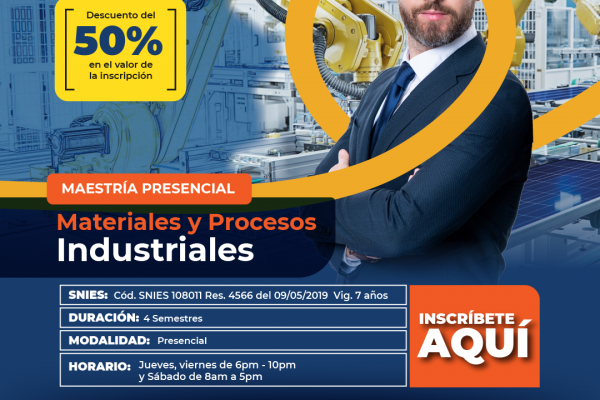 Si buscas aumentar tus conocimientos y habilidades y así obtener nuevas oportunidades laborales, aquí te presenta la prestigiosa Universidad ECCI la Maestría en materiales y procesos industriales, impartida en modalidad presencial, para tu mayor aprendizaje, el cual ahora puedes encontrar dentro del nuevo catálogo formativo de Emagister. Esta maestría te brinda la más alta calidad de aprendizaje para que puedas desarrollarte tanto personal como profesionalmente, gracias a los altos profesionales que cuenta la universidad. Al finalizar la maestría recibes un diploma por parte de la universidad.