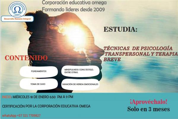 ¿Te gustaría profundizar tus conocimientos, herramientas y habilidades para poder ayudar a solucionar problemas del ámbito personal? Entonces esta información es para ti. Emagister te presenta este excelente Diplomado en Técnicas de Psicología Transpersonal con énfasis en Terapia Breve centrada en soluciones, el cual lo imparte Corporación Educativa Omega en su modalidad completamente virtual.