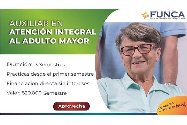 El Técnico Laboral Auxiliar en atención integral al adulto mayor de FUNCA está en la capacidad de desarrollar la recuperación continua de la autonomía del adulto mayor de manera integral, ya sea en condición autosuficiente o en algún tipo de incapacidad, brindando la más alta calidez humana, favoreciendo la disminución de mortalidad por causas prevenibles, además de adquirir conocimientos en acciones de promoción, prevención y rehabilitación velando por su bienestar y respeto de sus derechos. El campo de acción para su desempeño será el sector de la salud en hospitales, clínicas públicas y privadas, centros para adultos mayores o acompañante domiciliario.