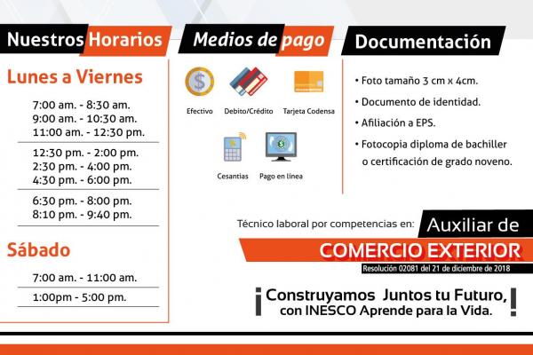 Emagister comparte con todos los interesados en dar un paso adelante en su educación el Técnico Laboral por Competencias en Comercio Exterior impartido por INESCO en modalidad presencial.