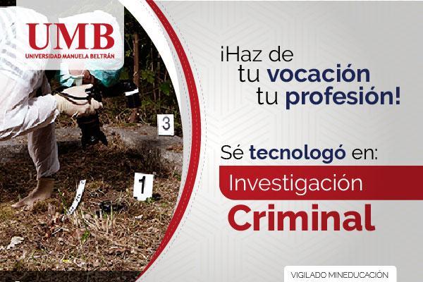 El Investigador Criminal de la UMB se concibe como protagonista dentro del actual esquema de Justicia penal en Colombia. Formado en el humanismo y la ética, pone a disposición de la sociedad los conocimientos jurídicos y científicos adquiridos, para formular hipótesis válidas en actuaciones judiciales o administrativas, verificarlas en la práctica y emitir conclusiones. Su conocimiento en criminalística y ciencias forenses, le permite desempeñarse como asesor en temas de prevención y control de riesgos en el sector público y privado.